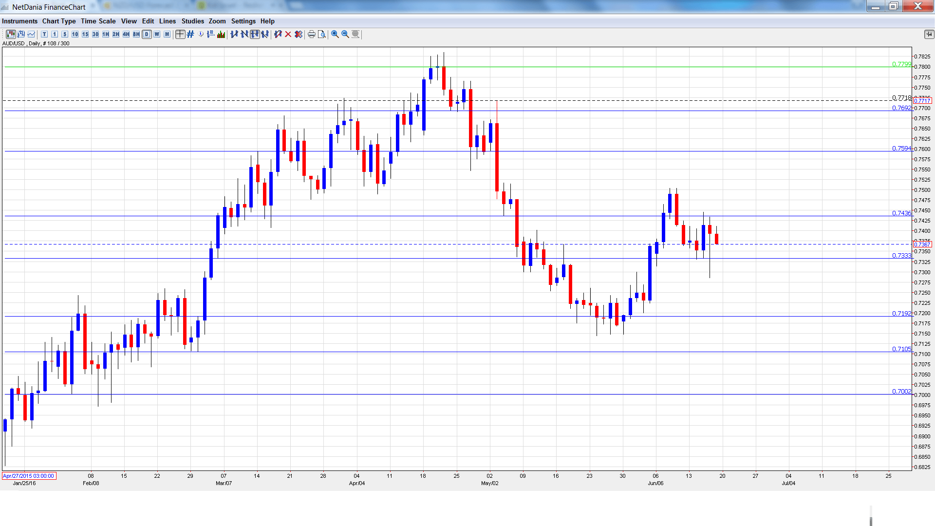 AUD/USD  ended last week almost unchanged, closing at 0.7366. This week’s highlight is Unemployment Change. Here is an outlook on the major market-movers and an updated technical analysis for AUD/USD.