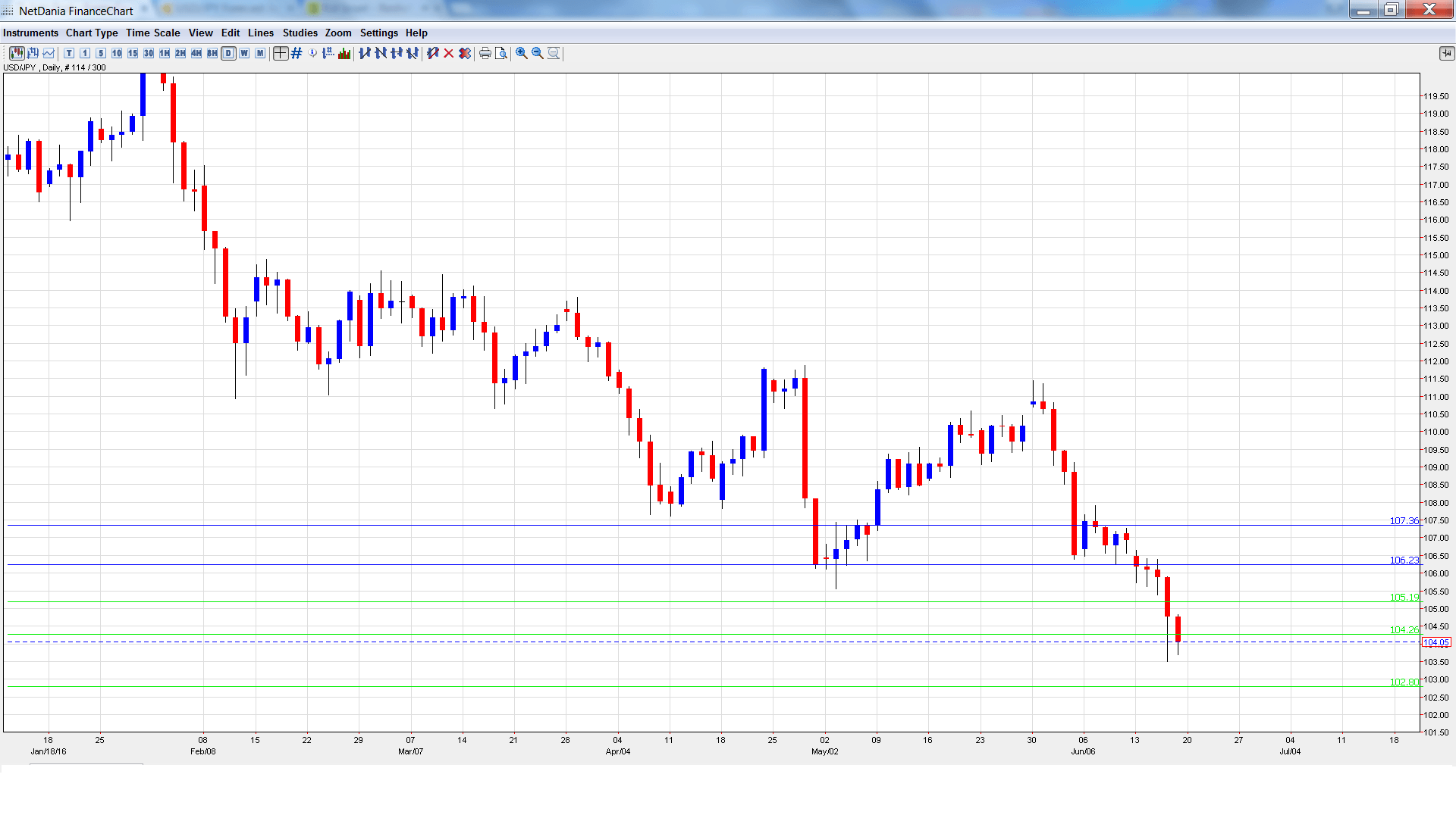 USD/JPY posted sharp losses last week, as the pair fell 240 points. The pair closed just above the 104 line, its lowest weekly close since August 2014. This week has five events on the schedule. Here is an outlook on the major events moving the yen and an updated technical analysis for USD/JPY.