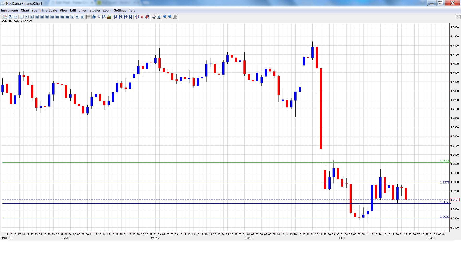 - Preliminary GDP: Wednesday, 8:30. Preliminary GDP, the first of three GDP reports, is the key event of the week. An unexpected reading can have a sharp impact on the direction GBP/USD. Final GDP for Q1 posted a gain of 0.4%, below the initial readings. Preliminary GDP is expected to post a gain of 0.5% in the second quarter.