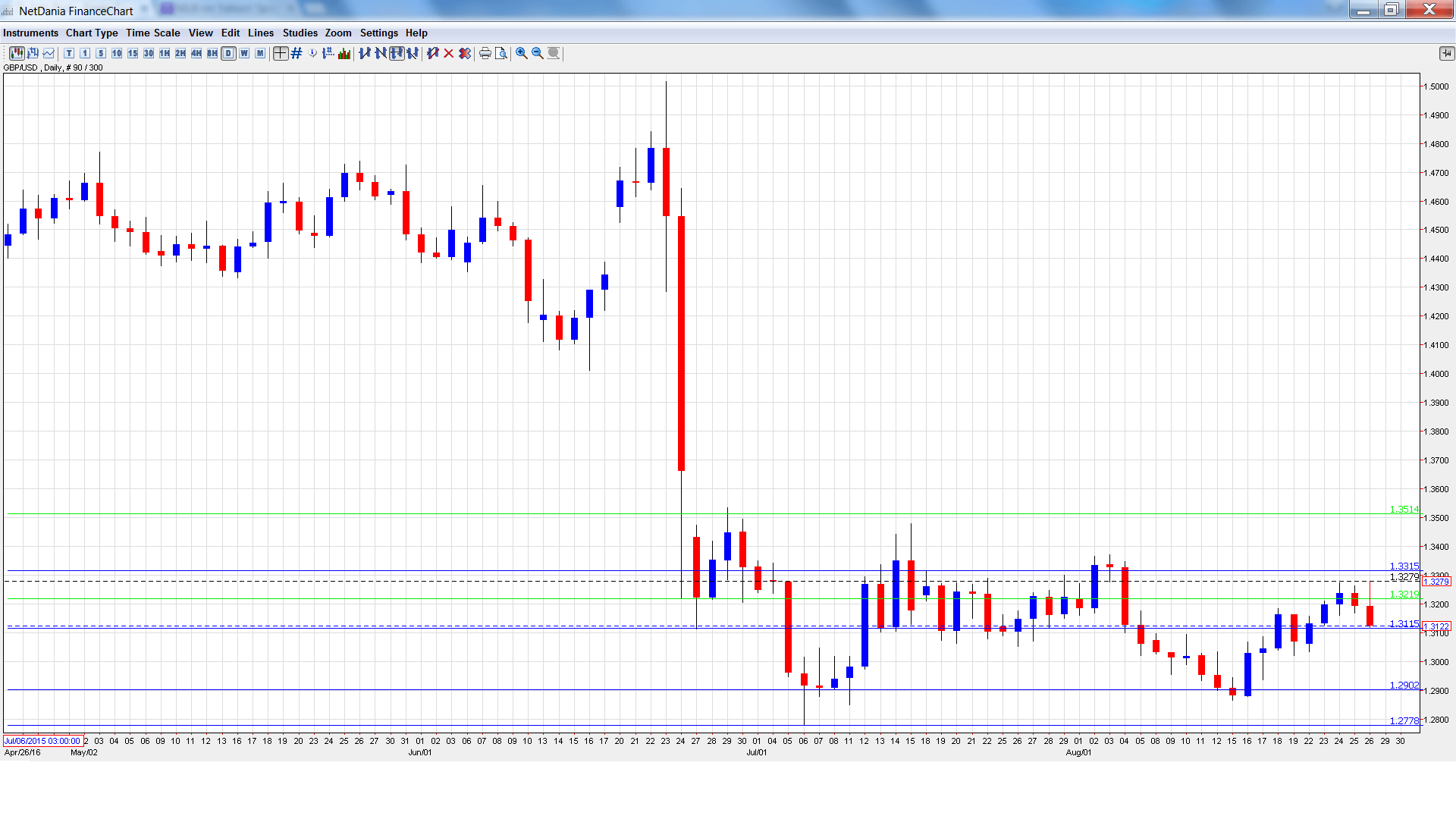 GBP/USD graph with support and resistance lines on it. Click to enlarge: