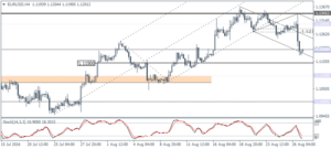 USDJPY (102.18): USDJPY closed at 101.78 on Friday, finally breaking out from the range high of 101.29 set on August 16. Resistance at 102.00 is likely to keep prices capped in the near term although USDJPY is seen currently trading near this level. Further upside can be seen only on a convincing close above 102.00. On the weekly chart, the bullish pattern is seen with a higher low formed last week. To the upside, above 102.00, expect USDJPY to eventually test resistance at 106.00. On the 4-hour chart, we can see a possible pullback to 101.00 – 100.66 ahead of the longer-term move to 106.00.