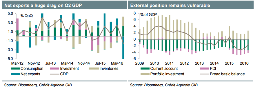 Q2 GDP fell by 1.6% QoQ, confirming a significant slowdown in growth even after accounting for the impact of the Fort McMurray wildfire. Without the updated macroeconomic projections we believe the BoC will mainly stay the course at the September meeting.