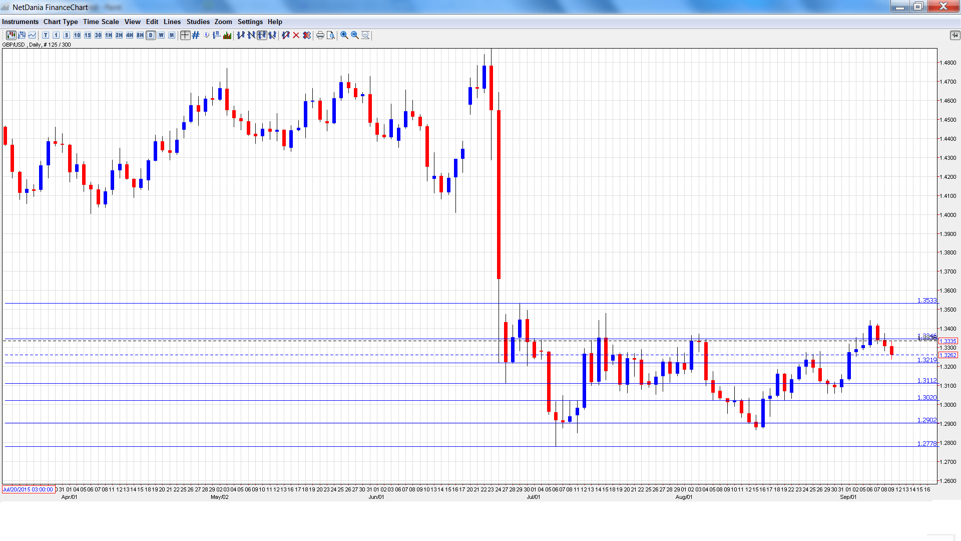 GBP/USD graph with support and resistance lines on it. Click to enlarge: