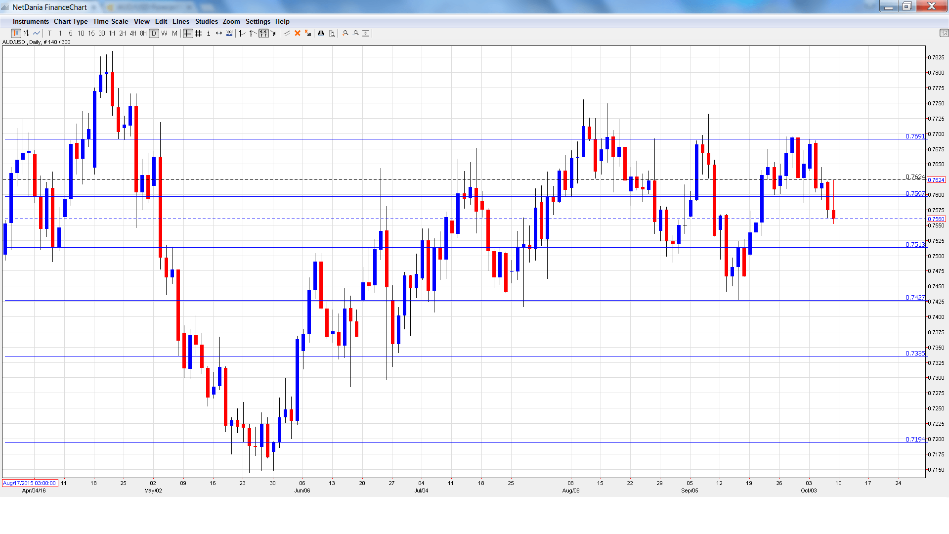 AUD/USD reversed directions last week and lost about 80 points, as the pair closed the week at 0.7560. It’s a quiet week, with six events on the schedule. Here is an outlook on the major market-movers and an updated technical analysis for AUD/USD.