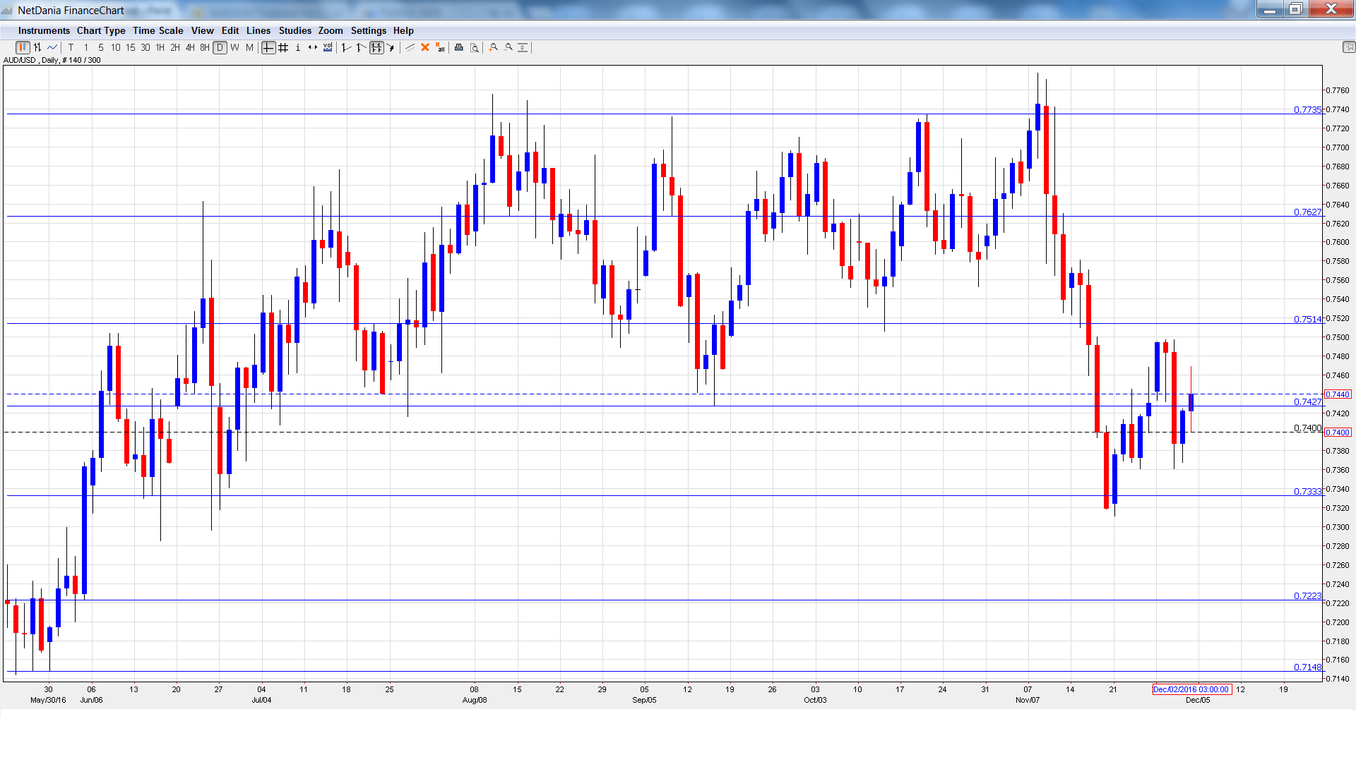 AUD/USD was unchanged last week, as the pair closed at 0.7440. This week’s key events are the Cash Rate and GDP. Here is an outlook on the major market-movers and an updated technical analysis for AUD/USD.