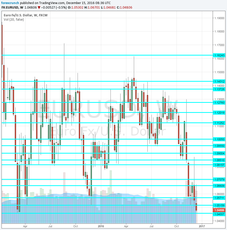 EUR/USD initially stalled at 1.0520, a double-bottom that only saw false breaks so far. However, this time, it’s real. Euro/dollar dropped all the way to 1.0468, just six pips above the March 2015 low of 1.0462. Below this level, we are back to trading last seen in early 2003, nearly 14 years ago.
