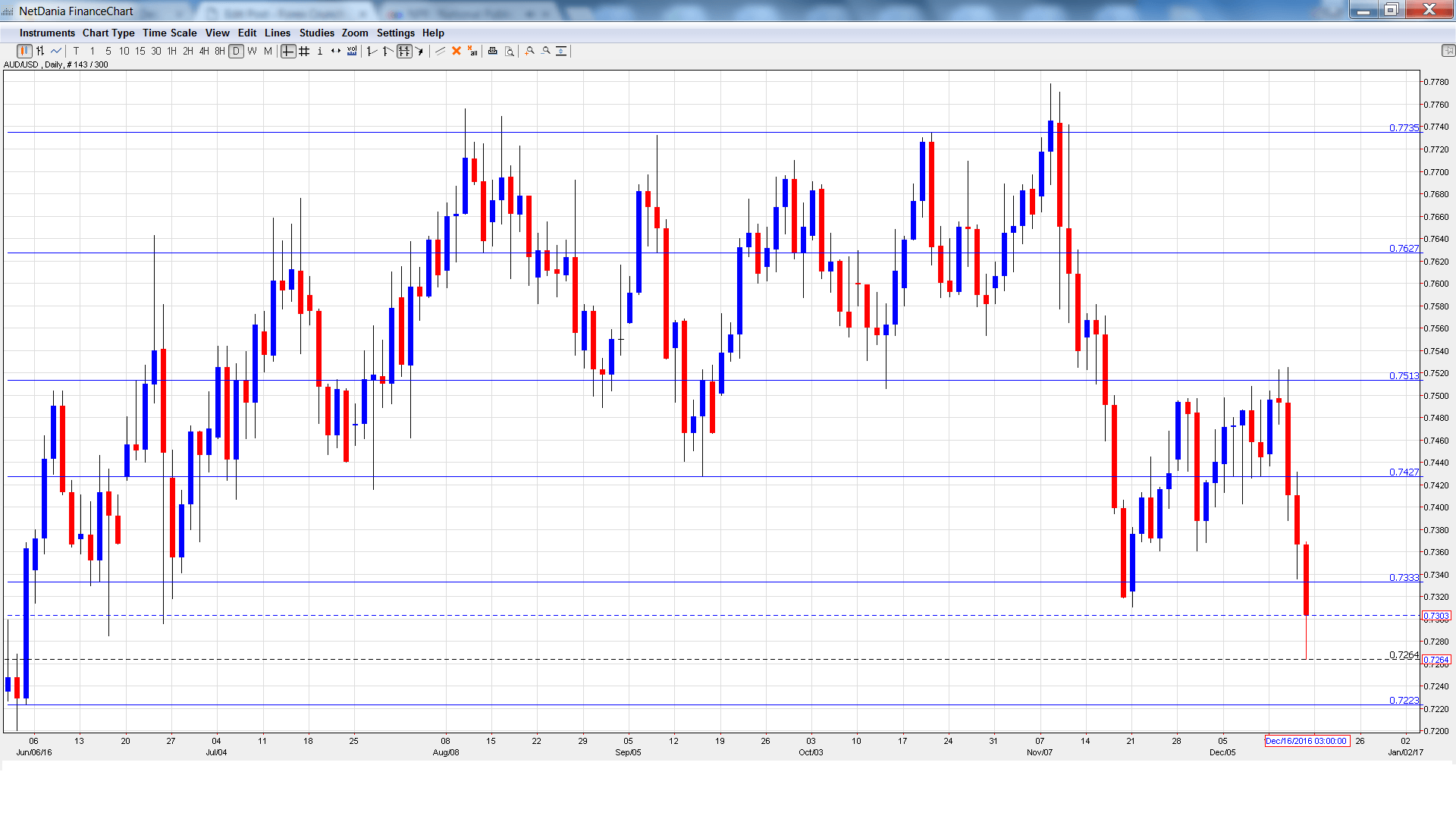 AUD/USD fell 240 points last week, as the pair closed at the 0.73 line. There are only four events this week. Here is an outlook on the major market-movers and an updated technical analysis for AUD/USD.