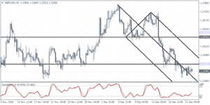 EURUSD (1.0433): EURUSD bounced off the 1.0400 handle yesterday, but the price action has been rather sloppy. The Stochastics Oscillator on the daily chart remains oversold which highlights the risk of a short squeeze amid thin trading as the markets enter into the final trading week of the year. In the near term, EURUSD is likely to continue its slow approach to the 1.0472 – 1.0462 minor resistance level. Note the potential inverse head and shoulders pattern that could be formed on a retest of this resistance level which means that another dip is likely where the right shoulder could be formed. Support at 1.0400 – 1.0380 is an ideal price zone where the reversal could occur. Therefore, traders are better off to wait for this dip to 1.0400 – 1.0380 to go long on the euro, targeting 1.0525 major resistance, while also limiting the risks to the previous low of 1.0352 from December 20.