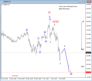 If DAX and S&P500 are going to see higher prices then support on USDJPY may not be far away, but we still may see a dip to 115.00 to complete a five-wave structure in wave C) before wave 4 correction of a higher degree can be finished.