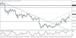 EURUSD (1.0554): EURUSD closed bullish in yesterday’s session with price action currently extending the gains higher after clearing the 1.0500 resistance level. The euro gained positive momentum yesterday especially after flash inflation estimates showed that headline inflation in the eurozone rose above one percent for the first time in a few years. The euro also maintained gains on broadly positive composite PMI numbers from December. On the 4-hour chart, price action will need to clear 1.0533 – 1.0500 support level in the term to extend the gains towards 1.0700 eventually. To the downside, the bias could turn flat in the event that EURUSD makes a daily close below 1.0500, which could keep prices ranging between 1.0500 and 1.0400.