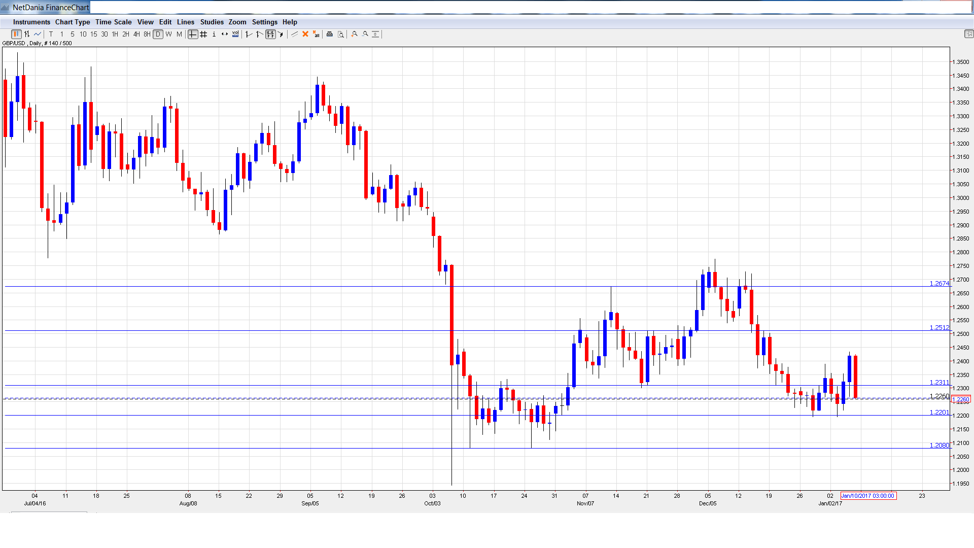 GBP/USD recorded strong losses last week, dropping 150 points. The pair closed at 1.2264. This week’s key event is Manufacturing Production. Here is an outlook for the highlights of this week and an updated technical analysis for GBP/USD.