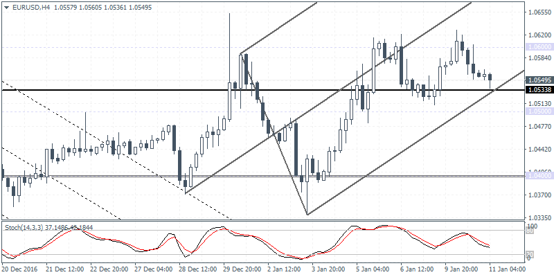 EURUSD (1.0549): EURUSD remains caught within the 1.0600 – 1.0500 range that has been established over the past five daily sessions. Price action is likely to slip back to 1.0500 support in the near term with further bias likely to be established on a breakout from 1.0600 or 1.0500. To the upside, 1.0700 will be the next resistance level of interest that will be targeted, provided the single currency will establish support near 1.0533. To the downside, a break below 1.0533 support could send EURUSD to test 1.0500 support, which if fails could signal further downside in EURUSD towards 1.0400.