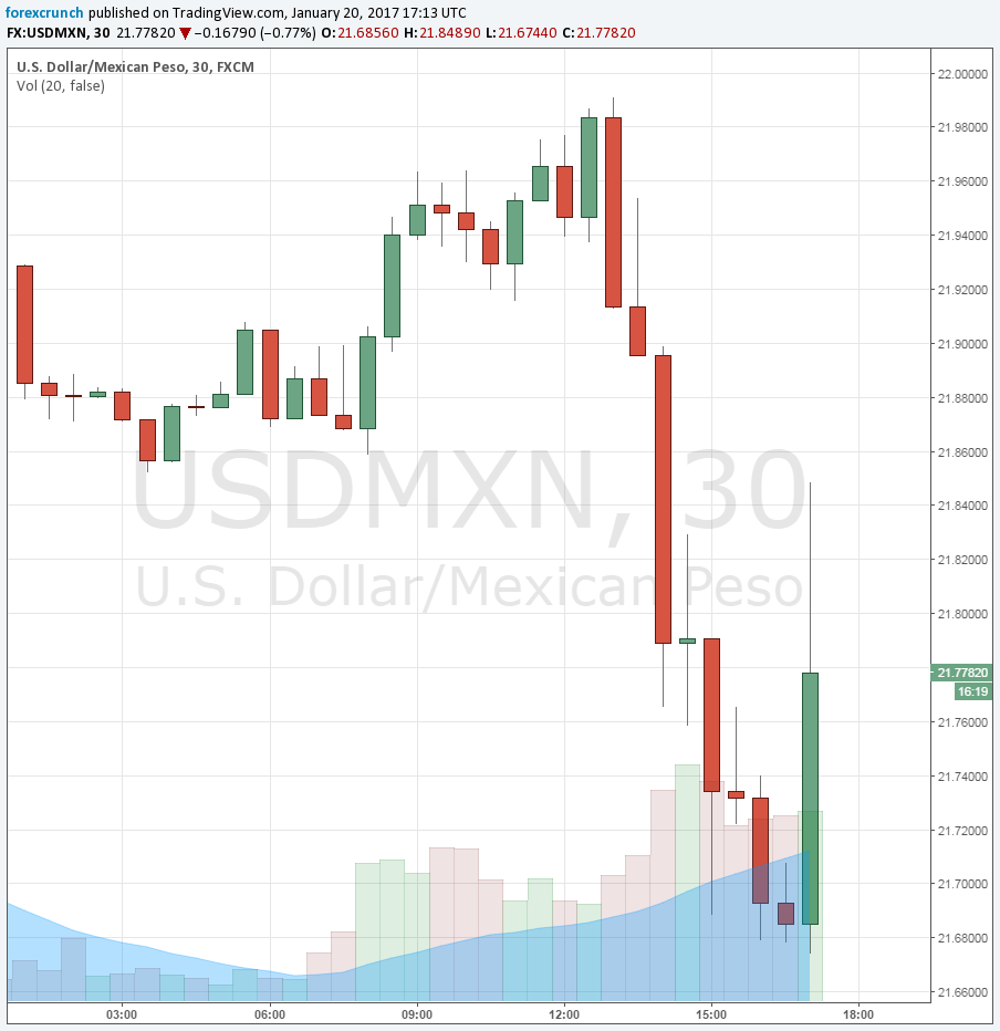 Here is the USD/MXN chart. The pair dropped ahead of the ceremony, and jumped afterward.