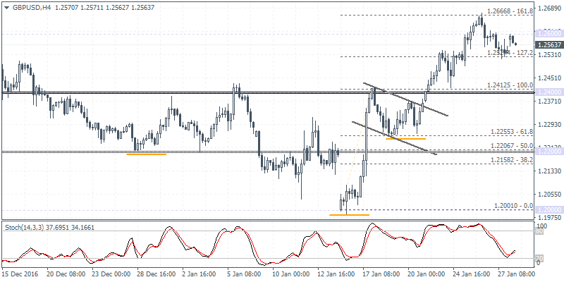 GBPUSD (1.2563): GBPUSD continues to remain bearish in today’s early Asian trading following last week’s two consecutive bearish close on Thursday and Friday. The downside bias towards 1.2400 is likely where support can be established at the level that previously acted as resistance. A retest towards 1.2400 will ascertain further gains in GBPUSD towards 1.2800 on the inverse head and shoulders pattern. However, watch for price action near 1.2400 as a breakdown below this support could signal further corrections and put the bullish bias at risk.