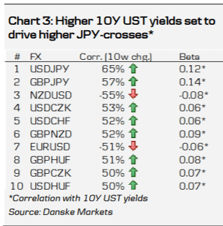 Over the coming 1-3 months, we expect the USD to strengthen in line with the receipt of more detail on the new US government’s fiscal stimulus plans and probably other tariff and tax measures during Trump’s first 100 day in office. We expect JPY-crosses to be the worst hit by reflation, with the USD/JPY likely to head up towards mid-December highs of 118/119.