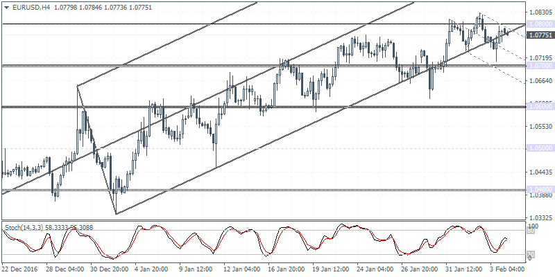 EURUSD (1.0775): EURUSD closed Friday’s session on a bullish note attempting to reclaim the 1.0765 – 1.0800 resistance zone. However, the failure to post significant gains above 1.0800 is a sign of caution with EURUSD seen consolidating around this level. On the 4hour chart, the bearish divergence is continuing to build up, but support at 1.0700 – 1.0735 will be the initial level that is likely to challenge the declines to the downside. A breakdown below 1.0700 is essential for further declines towards 1.0600.