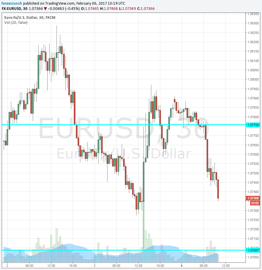 EUR/USD is trading lower, at 1.0734, down some 50 pips. A quick look at other currency pairs shows far more stability. This is not a dollar correction but rather euro weakness.