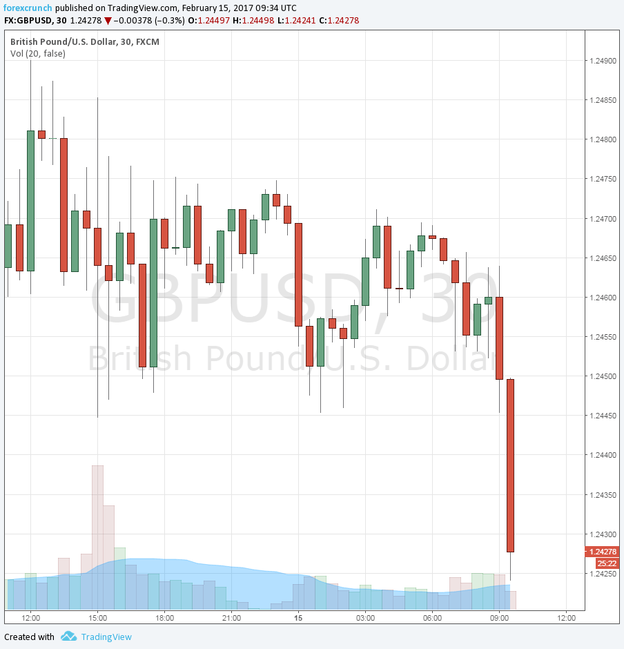 GBP/USD slips to 1.2430. Update: the pair extends its falls below 1.2420. Here is the 30-minute chart of pound/dollar: