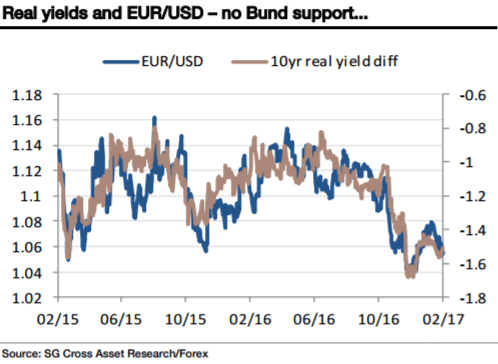 That’s lifted the Oddschecker odds of a Macron victory back up to 39% this morning, reversing a three-week downtrend. It’s narrowed the OAT/Bund spread by about 5bp too, though that’s down to lower French yields rather than higher German ones. At 27bp, Bunds still provide very limited support for the Euro and relative real yield differentials are only marginally higher this morning.