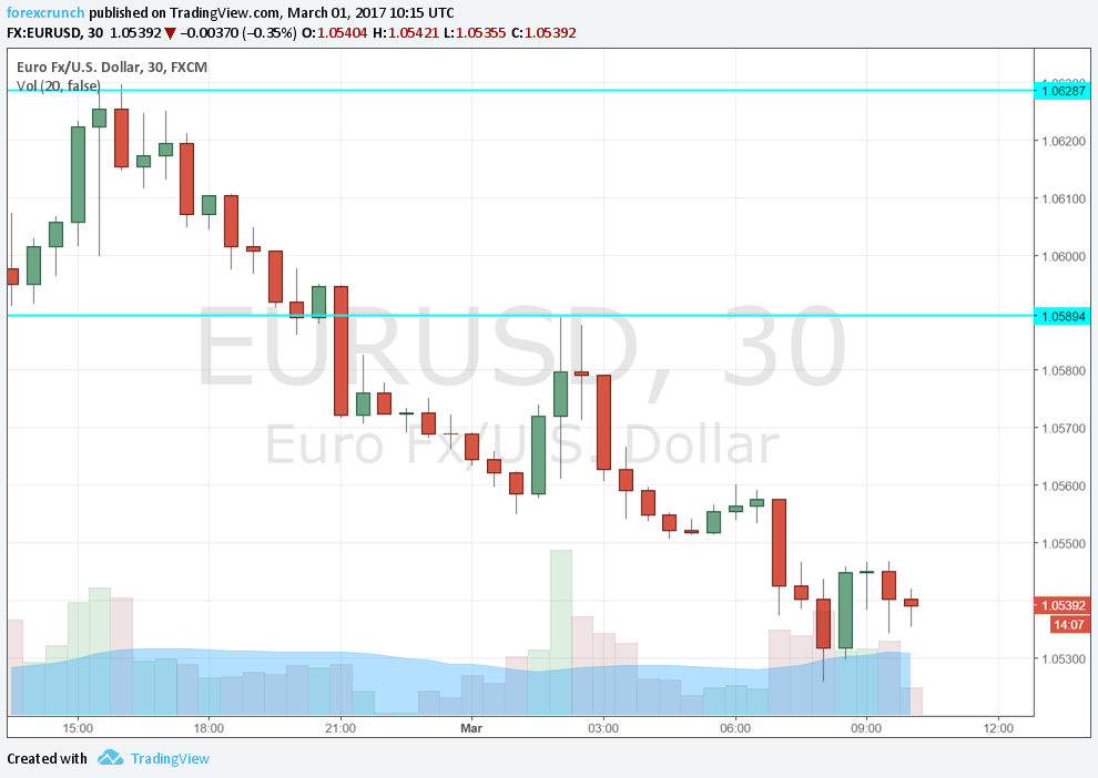 Here is how it looks on the chart. EUR/USD suffered from Deadly Dudley – hawkish  comments from the Fed regarding a rate hike in March.
