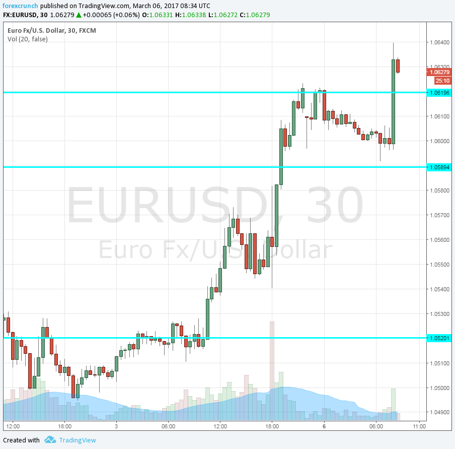EUR/USD is on the rise: after consolidating its most recent gains seen on Friday, the pair makes another move to the upside, reaching 1.0640.