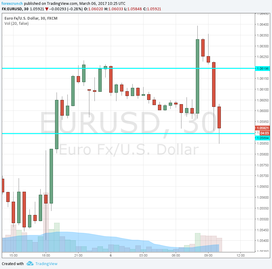 This triggered a downfall in EUR/USD: it had already tackled 1.0640 earlier, and now it trades at 1.0585.