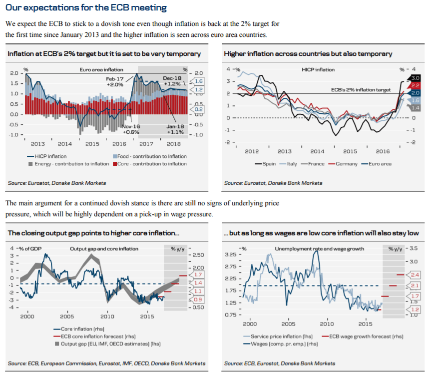 We expect the ECB to maintain its dovish stance at the meeting this week although inflation has reached the 2% target.