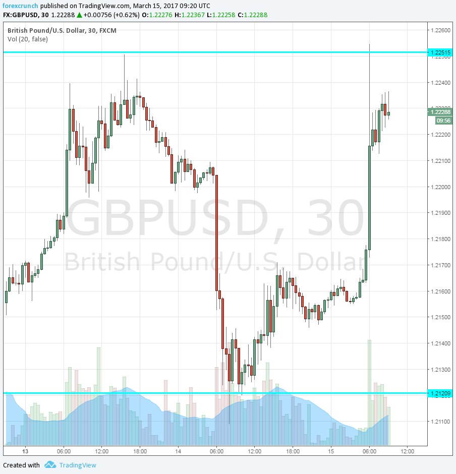GBP/USD was trading at 1.2227 ahead of the publication. Sterling rebounded after suffering from a Brexit blues downfall. The reason for the bounce is still unclear, but there is a clear double-top at 1.2250. Was the bounce related to a leak about a good jobs report?