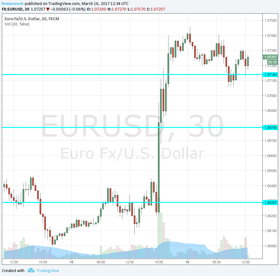 Here is how recent moves look on the euro/dollar chart. The euro also enjoyed the favorable outcome in the Netherlands, where the extreme-right Freedom Party was defeated.