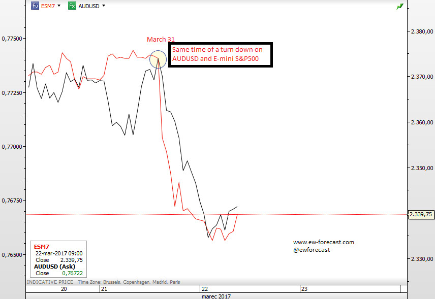 S&P500 vs AUDUSD, 1H