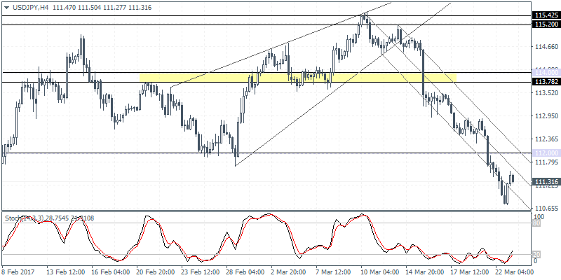 GBPUSD (1.2486): GBPUSD has managed to maintain the gains above 1.2400 price handle, which could now act as support, potentially holding back any declines. Establishing support at 1.2400 could signal further upside with 1.2600 coming in as the next target. In the near term, price action in GBPUSD could, however, remain range bound within the mentioned levels. To the downside, in the event of a breach below 1.2400, then GBPUSD could be seen falling towards 1.2200 and eventually to 1.2100, where a more firm test of support is pending.