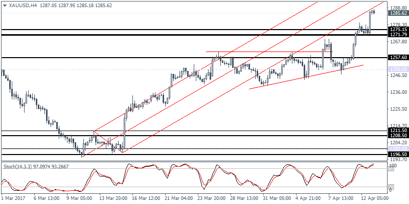 XAUUSD (1285.62): Gold is seen currently rallying to a 5-month high as the precious metal has resumed its bullish momentum. This is expected to push gold prices towards the $1300.00 mark once again, and a failure to test this level could trigger a short-term correction in prices towards $1250 initially.