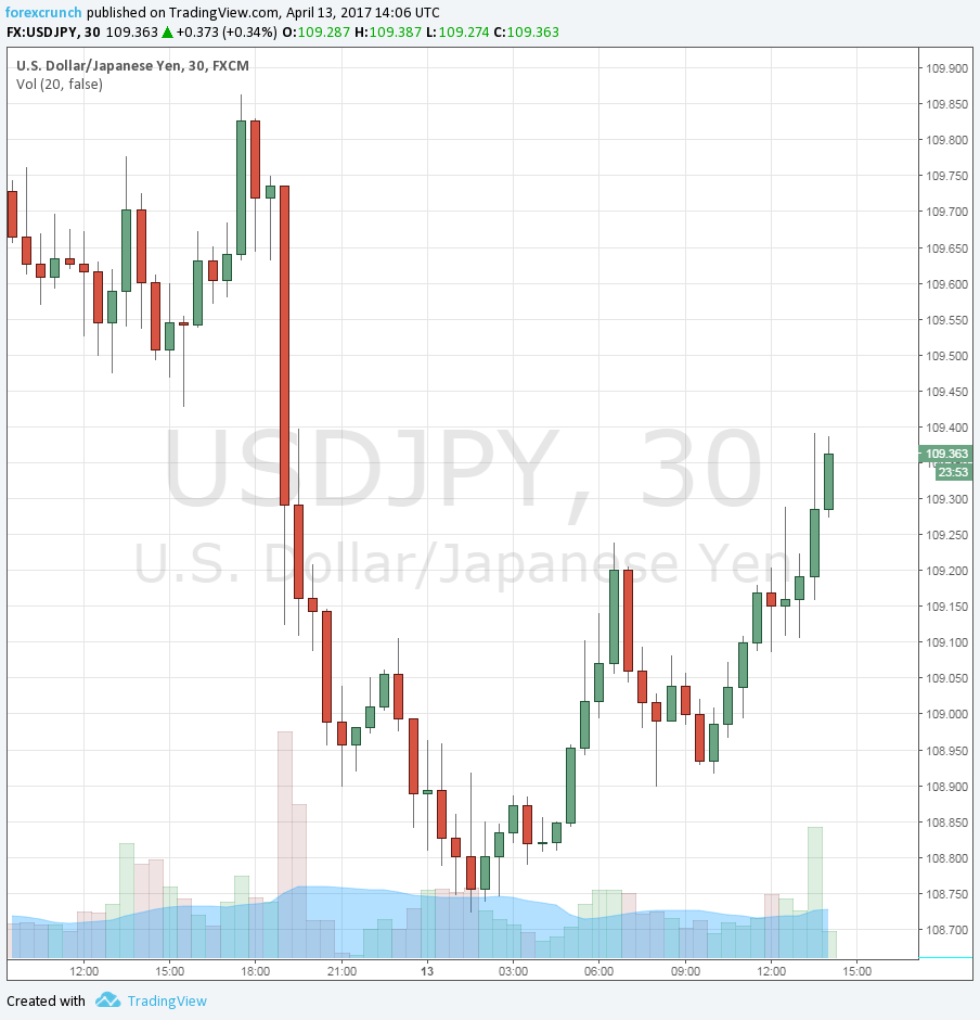- USD/JPY, charted below, is around 109.30.