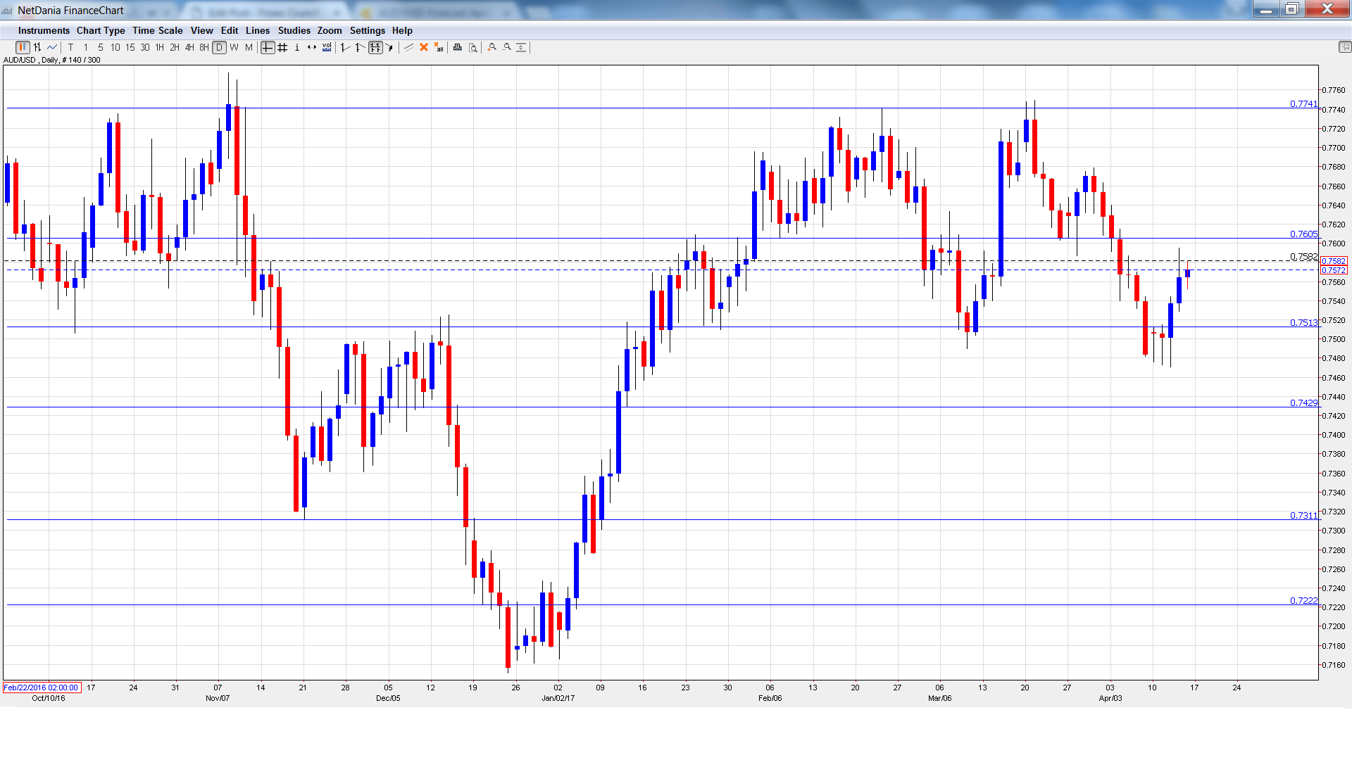AUD/USD posted modest gains last week, as the pair closed at 0.7572. This week’s key event is the RBA Monetary Policy Meeting Minutes. Here is an outlook on the major market-movers and an updated technical analysis for AUD/USD.