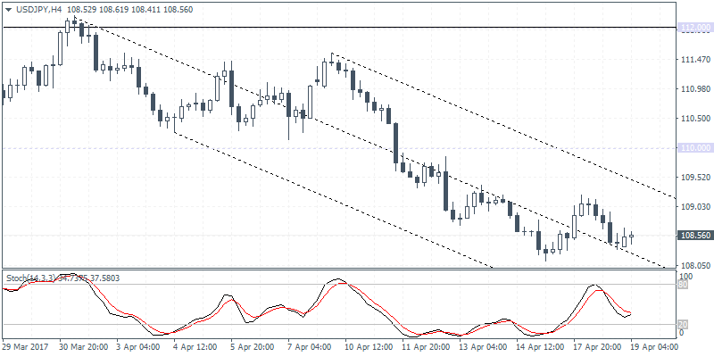 USDJPY (108.56): USDJPY could be looking to post a relief rally with the prices currently seeing making a modestly higher low. However, the price will have to clear out the previous lower high formed at 109.20. A break out above 109.20 will confirm a move towards 110.00 at the very least which will mark a retest of the broken support level when resistance will also be established. Alternately, failure to clear 109.20 could signal further downside on a breakdown from the previous lows post at 108.30.