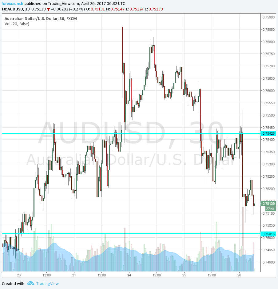 AUD/USD still responded with a downfall, dipping towards the very round level of 0.75 that had worked as a cushion also in the past.