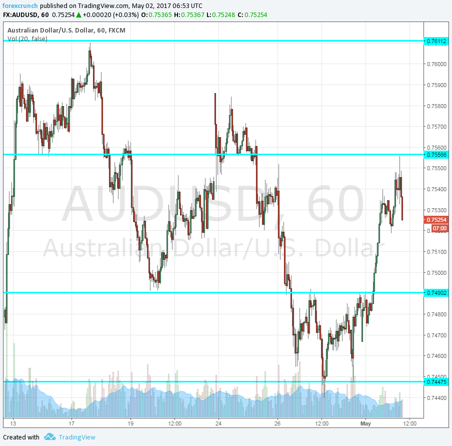 AUD/USD currently trades above 0.75. The pair is off the low support levels of 0.7450 but certainly not going anywhere fast.
