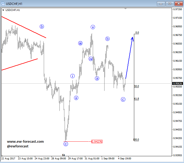 USDCHF looks very similar; five-wave from the low suggesting an uptrend continuation after the current-a-b-c set-back that seeks a support at the current 0.9550 zone.