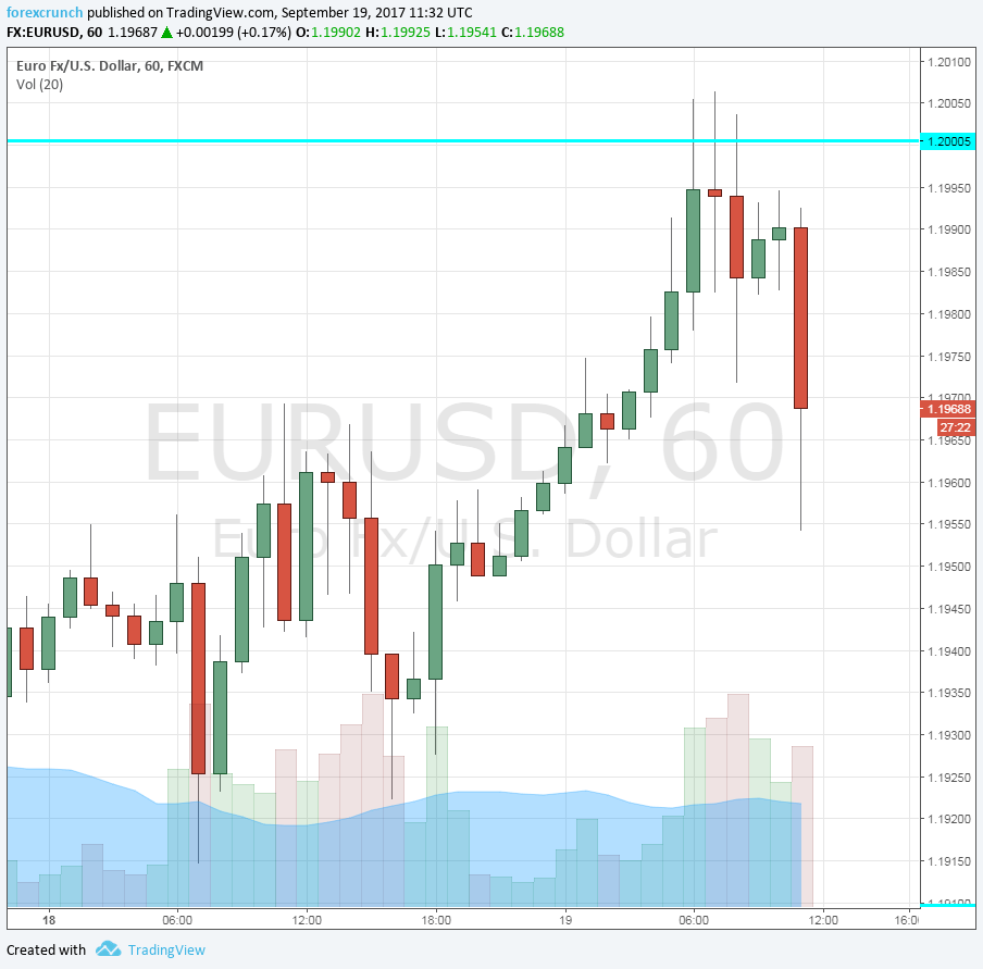 Update: the low is 1.1955 and the pair is already up to 1.1977.