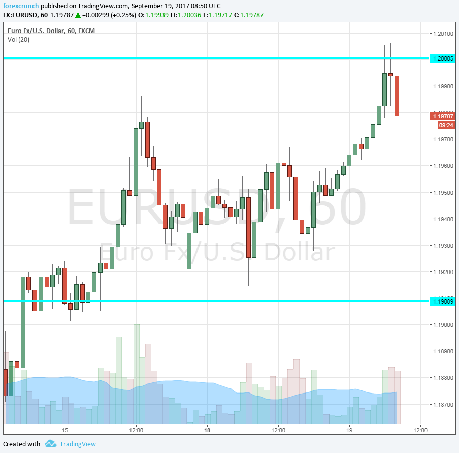 EUR/USD began the day with a rise and a peek above 1.20, reaching a high of 1.2006. It then slid to 1.1980 ahead of the release.