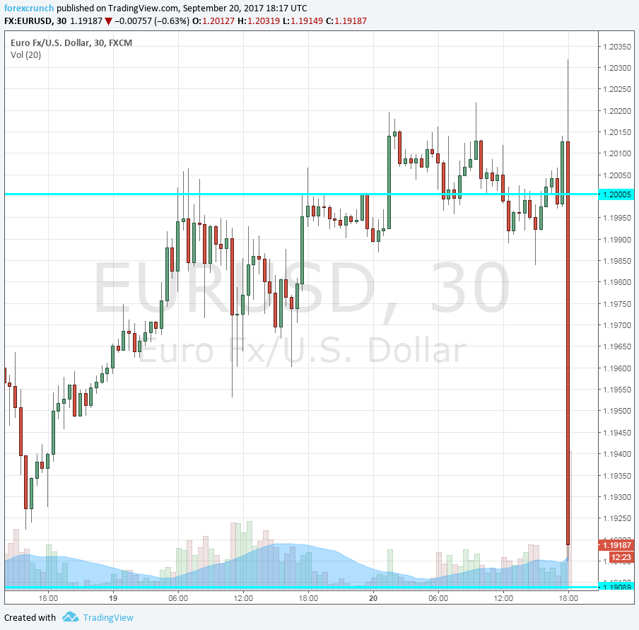 EUR/USD crashes from 1.20 to support at 1.1910. Further support awaits at 1.1870. Update: the pair continues lower, hitting a low of 1.1892. The pair reaches a low of 1.1885 but bounces to 1.19.