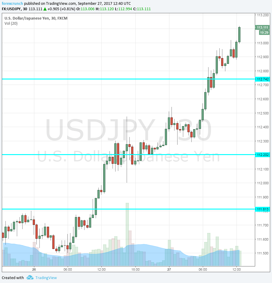 Here is the move on dollar/yen. The pair has already topped 113. The move is mimicked in other currency pairs.