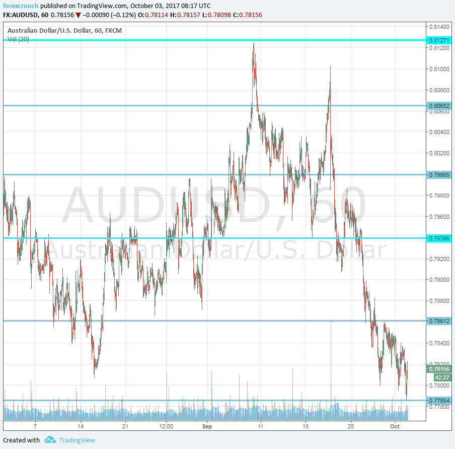 AUD/USD reached a new low of 0.7785, but continues sticking to 0.78, trading around 0.7815 at the time of writing. Further support awaits at 0.7715, if 0.7785 is breached. The next lines are 0.7635 and 0.7565. Resistance awaits at 0.7860 and 0.7940.