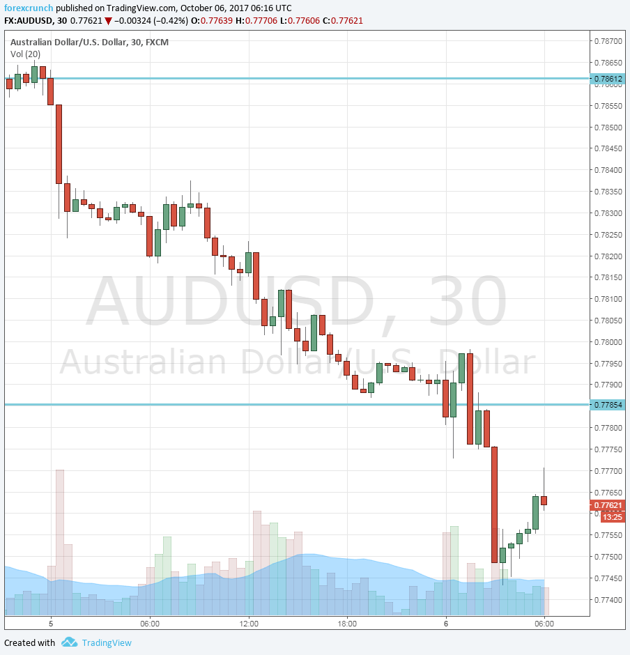 The Australian dollar falls under 0.78 and probably in order to stay there. The pair reached a low of 0.7743 before bouncing to 0.7760, not really an impressive bounce.