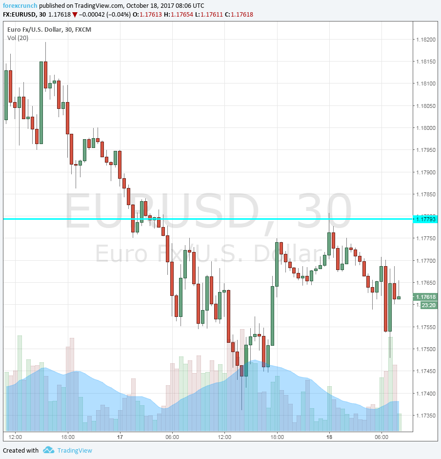 Euro/dollar trades around 1.1760. Resistance awaits at 1.1780 and support at 1.1720.