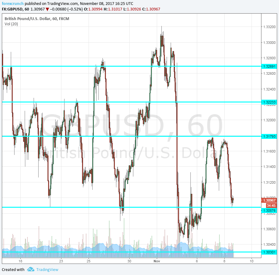 GBP/USD is finding it hard to hold onto the 1.31 handle and is flirting with this line. At current levels, cable is at the lower end of the wide range of 1.3030 to 1.3320 that characterized it recently.