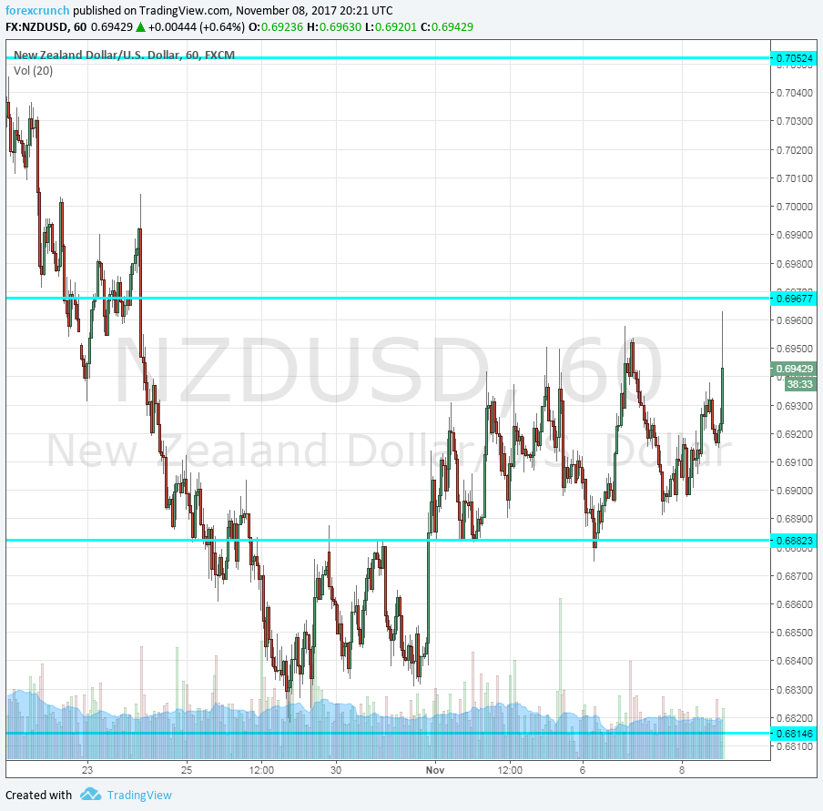 The kiwi continues its recovery from the post-government forming lows of 0.6815. The recent political worries in the US regarding the tax plan hurt the US dollar.
