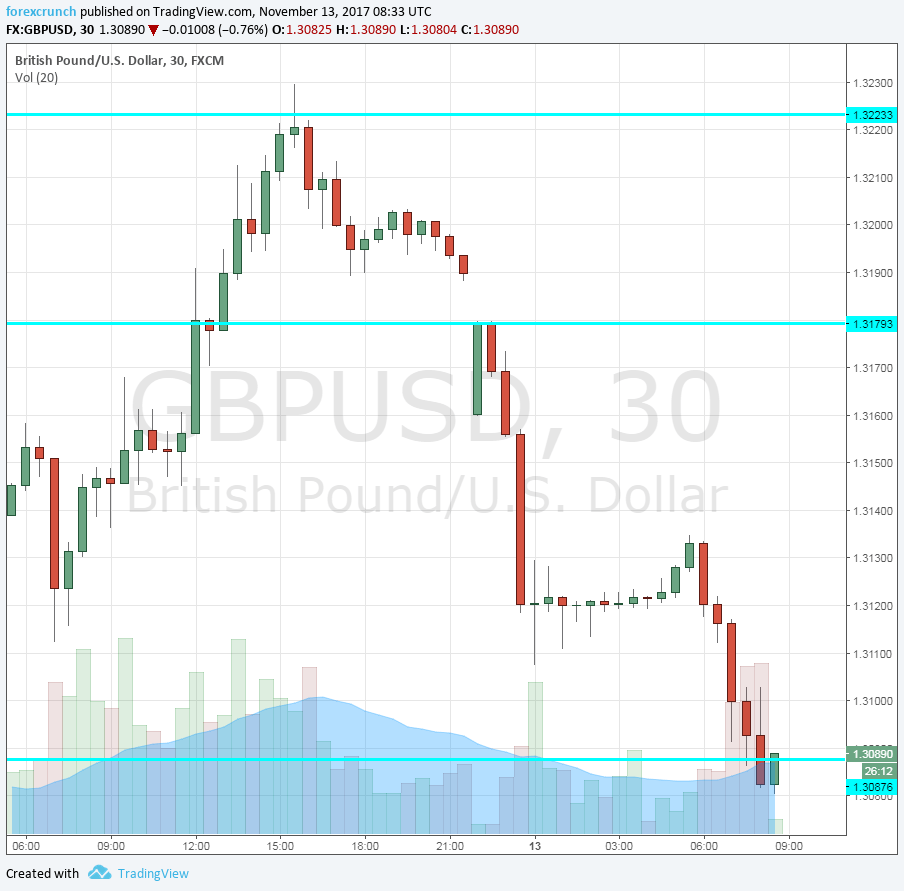 Pound/dollar is trading at 1.3090 at the time of writing, down from a high of 1.3180, which is already below the close at 1.3190. It already reached 1.3080 earlier in the day.