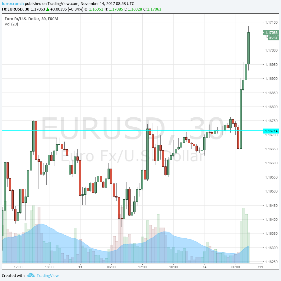 EUR/USD was moving up, trading around 1.17 ahead of the release, thanks to the excellent German GDP.
