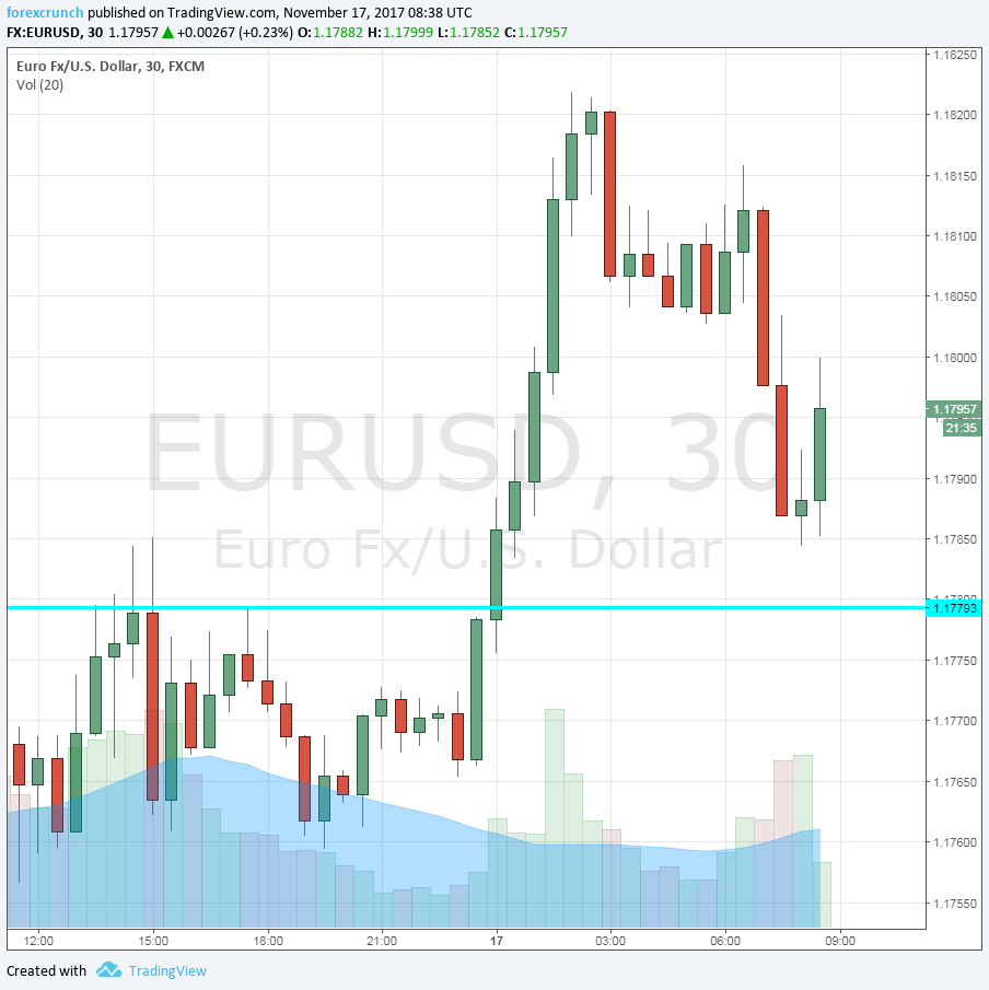 EUR/USD is trading around 1.18.